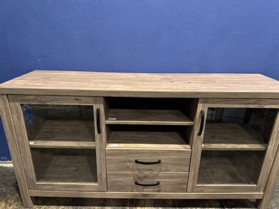 A contemporary storage solution is here to elevate your space with this buffet sideboard cabinet. Crafted from engineered wood with a water-repellent surface, this piece meshes elegance with convenience, perfect for spaces throughout the home, including the kitchen, dining room, entryway, or living room. Make a statement by showcasing eye-catching dishes, glassware, or decorations in two cabinets with adjustable shelves and beautiful, soft-close, tempered glass doors. Two drawers and an open shelf next to the cabinets deliver even more room for storage. This sideboard cabinet holds up to 200 lbs. static weight and each shelf can hold up to 55 lbs. static weight. Assembly takes roughly 60 minutes with hardware included for your convenience. Enjoy hassle-free maintenance by wiping with a damp cloth.