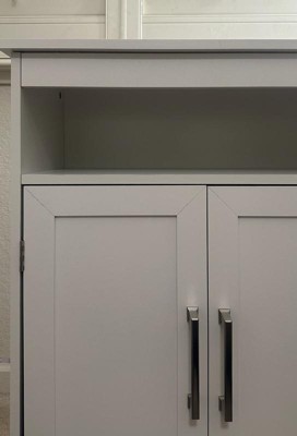 Product Name: Merrick Lane Bathroom Storage Cabinet with Adjustable Cabinet Shelf, Upper Open Shelf, and 2 Magnetic Closure Doors in White