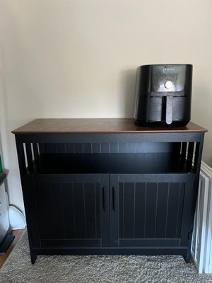 [This review was collected as part of a promotion.] I’ve been looking for a piece of furniture to use as a coffee station and this one fits the bill. Be sure to set your expectations realistically since this isn’t solid wood - it’s particle board or compressed shavings. Meaning it’s pretty fragile and not completely waterproof. Putting it together took about 2 1/2 hours with 2 people going at it. The instructions were a tad confusing and in the end one of the doors doesn’t exactly line up with the strike plate. I think the screws weren’t lined up exactly right. However, it’s functional and that’s really all I needed. Plenty of storage space, cute build and a great size. It does exactly what I need it to - and therefore I am happy.