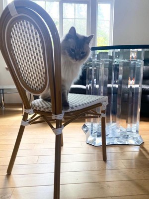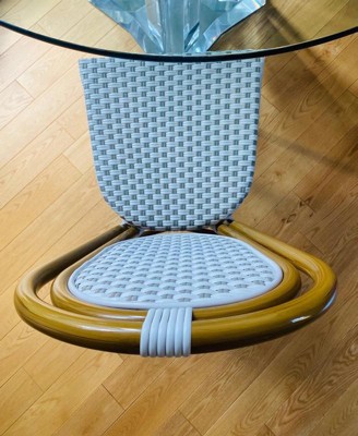 [This review was collected as part of a promotion.] This chair in the French rattan design is both incredibly adorable and sturdy. Since the rattan is composed of plastic, I don't think it will break with time. In addition, owning this chair allows me to appreciate how stylish my house looks and to quickly clean up any food messes and dust my toddler may have made. The plastic nature of the rattan makes it incredibly comfy to sit on and doesn't hurt my silk outfits and pj pants. You may put this kind of chair outside without worrying about rain, humidity, or mold growth. As I previously stated, this kind of chair is fantastic as I can wash or wipe away all the dust while maintaining my fancy boho style. I feel like dining in a French style cafe using this chair! I wish I could get 3 more to complete my dining set.