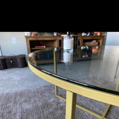 [This review was collected as part of a promotion.] This table was an absolute stunner in my living room. The brushed gold color of the frame is neutral enough to match many decor’s and the glass table is very durable and sturdy. It’s very classy looking and yet very simple