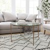 Product Name: Merrick Lane Glass Coffee Table with Round Brushed Gold Cross Brace Frame