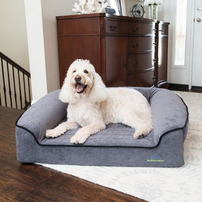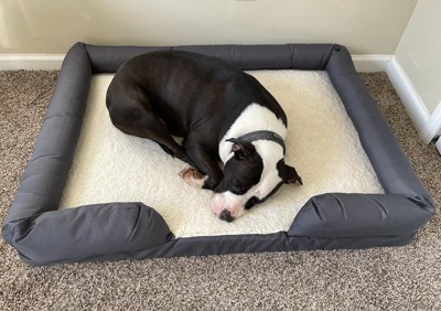I recently purchased this bed for my dog. He is a younger adult dog, but absolutely loves it! At first, I was worried about it not being big enough, but he has plenty of room to spread out. The inside surface is so soft and gives him the perfect amount of squishiness for his body during his long naps. Having the bolster around the bed comes in handy when he wants to rest his head no matter where he lies. It also gives some comfort being closed in a little. The material is soft, yet very durable and should last a long time. I highly recommend this bed for any age dog.