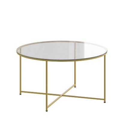 Product Name: Merrick Lane Glass End Table with Round Matte Black Frame and Vertical Legs