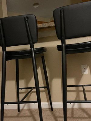Add contemporary and sleek accents to your home with these black metal framed faux leather barstools. Designed to withstand the rigors of daily use and keep you and your guests comfortable for hours on end, this set of 2 barstools is the perfect addition to any kitchen or bar.