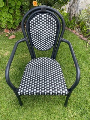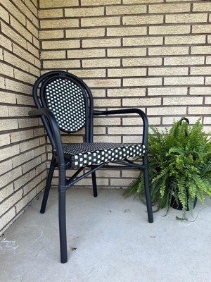 Merrick Lane Celia Stacking Thonet Bistro Style Chair with Arms, PE Rattan Seat, and Metal Frame for Indoor/Outdoor Use