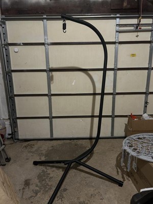 Create an upscale lounge area indoors or outdoors with this all-weather C-stand ideal for your favorite hanging chairs from egg chairs to kids sensory swings. Durably constructed from powder coated galvanized steel and boasting a wide, X-shaped base, this hanging chair stand supports up to 300 lbs. static weight and allows 360° rotation for easy conversation. Assembly takes less than 30 minutes and cleanup is easy with a damp cloth so you can relax sooner, rather than later.