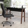 Catch up on work emails on this upmarket writing desk that lends understated elegance to any room in the home. A clean black finish pairs seamlessly with the walnut finish A-frame legs and will blend in almost any decor from farmhouse to coastal. The smooth rectangular top provides ample room for your laptop computer and features a partitioned drawer to hold important papers or stationery. Ball bearing drawer slides allow whisper-quiet opening and closing. Place this writing desk with drawer in your home office or small apartment to add a dash of chic sophistication to your living space.