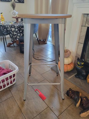 [This review was collected as part of a promotion.] Easy to put together table. High top table that is perfect for outside patio or corner nook. Its sturdy and durable. I like the black legs and wood top. It looks good in my corner nook. Its cute and stylish!!