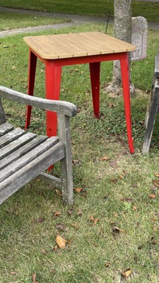 Refresh the look of your indoor or outdoor spaces with the stylish design of this 23.75" square dining table. Featuring a slatted poly resin top paired with a steel frame this contemporary yet rustic table will blend in almost any decor. Thoughtfully crafted with a poly resin top and a 20 gauge steel frame that will hold up to 200 lbs. static weight this patio table ideal for year round use. Pair with other items in the collection for a cohesive look throughout your home.