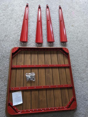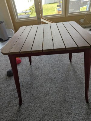 [This review was collected as part of a promotion.] I love this table. It's so sturdy and well made. The pop of red adds uniqueness to our outside entertainment area. We brought it in for the winter and it also works in our breakfast nook. A bonus- the poly resin top makes it so easy to clean. We are thinking we should add a hightop set for next summer as well!