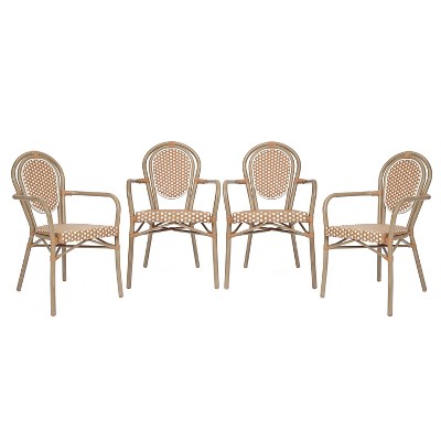 Merrick Lane Celia Set of Two Indoor/Outdoor Stacking Bistro Chairs w/ White & Natural Patterned Seats & Backs & Light Bamboo Finished Aluminum Frames