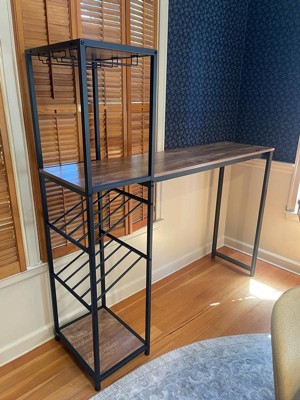 [This review was collected as part of a promotion.] I was lucky to receive this beautiful bar table from Influenster, and I’m genuinely impressed with its quality and design! The Jura Metal Bar and Wine Table brings a perfect blend of modern industrial style and everyday functionality. The sleek black metal frame paired with the wood-finish shelves gives it a chic, elegant look that easily fits into any home décor. It offers great storage options – it holds multiple wine bottles securely on the angled racks, features a built-in stemware holder for up to 4 glasses, and even has a bottom shelf for extra storage or a decorative touch (I added a small plant!). The structure feels strong and very stable – nothing wobbles, even when it’s fully stocked. Assembly was quick and hassle-free, with clear instructions and all parts included. Overall, this is a gorgeous and practical addition to any kitchen, dining area, or entertainment space. Whether you’re hosting guests or just love having your wine beautifully displayed, I absolutely recommend it!