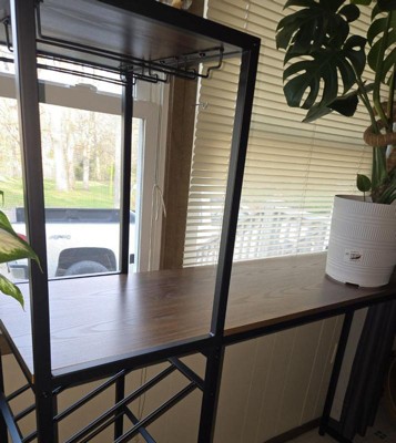 [This review was collected as part of a promotion.] This bar table is the perfect blend of form and function! The modern metal design adds a sleek, industrial-chic vibe to my space, while the slanted wine storage and hanging glass station keep everything organized and within reach. Assembly was a breeze—everything fit together smoothly with the included tools, and the finished product feels rock-solid, even when fully stocked. I’m impressed by its stability; no wobbling, even with heavy bottles. The durable metal frame ensures it’ll last, and the compact footprint doesn’t sacrifice storage capacity. It’s become my go-to for entertaining—guests always compliment it! Whether you’re a wine enthusiast or just love a stylish home bar, this table delivers on both looks and practicality. Highly recommend!