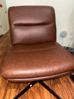 [This review was collected as part of a promotion.] I am obsessed with this chair. It’s the perfect size for my desk in the leather is super easy to clean. I also love how it does not have handles so you can kind of sit the way that you want to sit with no restrictions.