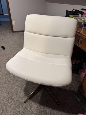 [This review was collected as part of a promotion.] I love this chair because it’s super comfy and actually looks cute in my room. The padding is really soft and the wide seat gives me space to sit however I want. I like that it doesn’t have arms too it just feels way more chill and easy to move around in. It was also really easy to put together, like it only took a few minutes. The height adjusts super smooth and it feels really strong, like it’s gonna last a long time