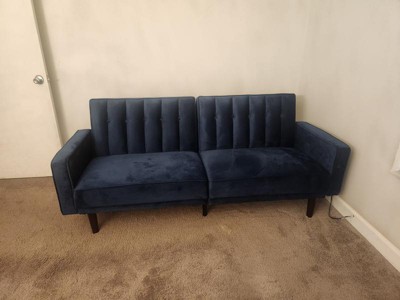 [This review was collected as part of a promotion.] I. Love. This. Couch. So much so that my dog-loving self has banned the dogs from using it, haha! They get the old one. ;) First of all, it’s absolutely stunning. It has that MCM/industrialist look but is so overwhelmingly soft and beautiful to look at. The blue color is very vibrant, which I feel like is hard to get sometimes. Here are my reasons for a 5/5: 1. Easy to put together. This was packaged well and designed with the user in mind. It took me 20 minutes or less to put it together. 2. Comfortable. It’s a little firm, but personally I don’t like to sink into my couches. The back is adjustable for the lean/height you want and goes in three “stages”. 3. Futon!!! I almost dropped it a star, but honestly most comfortable couches aren’t super comfortable. However it is convenient. I would put a comforter over top if using it as a *temporary* bed for a guest. 4. Flexible!! Not only are the backs adjustable, but the arms of the couch come off in a tug. This makes it easy to adjust for guests and/or the futon. Overall, this is an awesome couch. If you want a mid century modern twist or just a cool, beautiful couch, this is the one.
