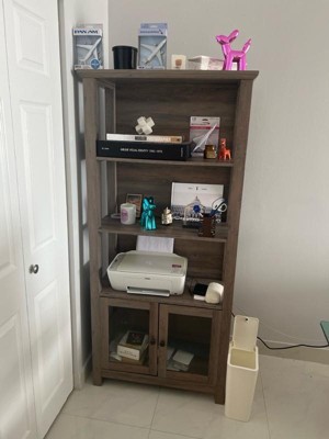 [This review was collected as part of a promotion.] I was THRILLED to have an opportunity to receive this product. We needed a bookshelf and the bottom cabinet looked like a great addition. Overall, it seems much shorter than the photo and maybe even a bit wider so that seemed a bit misleading but overall I think it’s very pretty. I decided to put it together myself and the instructions were very specific and helpful. It was an easy process that only took an hour or so. It was very heavy the ugh and I was VERY disappointed when the cabinet doors didn’t even line up correctly! I had to make shift it and make my own screw holes to align it. Quite disappointing. I would’ve preferred bigger pads on the bottoms too instead of little pins? But it seems good quality and the coloring is very nice. Overall I’m happy with it!