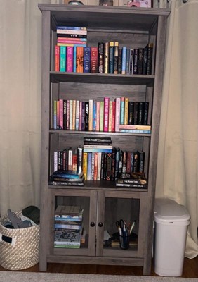 [This review was collected as part of a promotion.] This book case is really nice quality ! It’s super big and sturdy. I love the storage with the door underneath. The color is a nice beachy grayish wood.