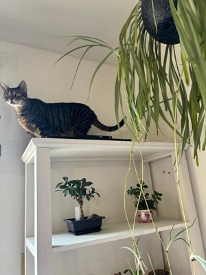 [This review was collected as part of a promotion.] This shelf is perfect for our house. It fits perfectly next to my desk and matches the color… I moved my plants, the internet router and my 3 in one charger for my phone, iPad and AirPod charger and some small decorations. My cats also love sitting on it and climbing on top of it. It could be used for so many things: a plant stand, a bookshelf, to fold laundry or store laundry supplies, to use in a pantry, etc.
