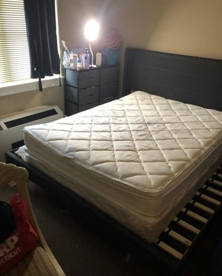 [This review was collected as part of a promotion.] The perfect queen size bed frame and headboard. So easy to setup and so sturdy. Holds a mattress and a box spring without any issues. Great quality and value. Setup takes about an hour. Clear instructions and so easy to clean the fabric of the headboard. I recommend it to all my friends and family.