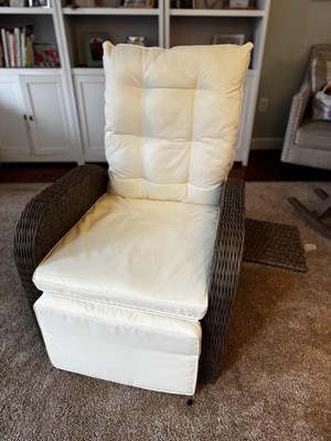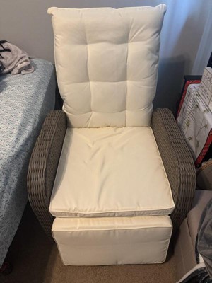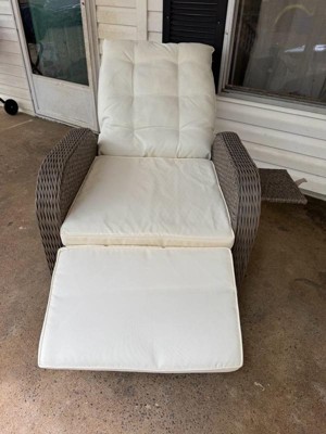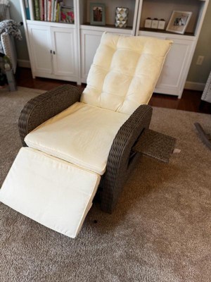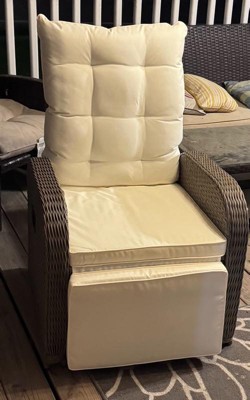 [This review was collected as part of a promotion.] I received t this recliner complimentary for feedback for my patio, and I love it! It’s sturdy, comfortable, and looks great. The wicker design feels durable, and the cushions are soft and supportive. I really like the built-in side table — it’s perfect for holding a drink or book while relaxing. The reclining feature works smoothly, and it’s easy to adjust to your favorite position. It’s also nice that it can be used indoors or outdoors. Assembly took a little time, but once it was set up, it felt solid and high quality. Pros Comfortable and stylish Handy flip-up side table Works indoors and outdoors Cons Assembly can take a bit of time Cushions should be covered when not in use Great recliner for the patio or sunroom — comfortable, good-looking, and worth the price!