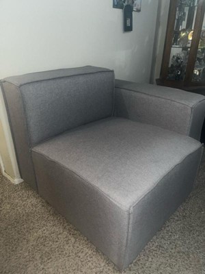 A deep seat and comfy cushion are just the tip of the iceberg on this elevated modular left side armchair. Designed to be freestanding or attached in multiple configurations with other pieces in the collection using the clips beneath the seat, this component is ideal for both large and small spaces. The pocket spring core is covered with comfort foam and premium fabric upholstery with piped edges for a timeless look. Constructed with a solid wood frame, this seat holds up to 300 lbs. static weight and assembly takes less than 10 minutes. Vacuum or lightly brush to maintain the look of this fabulous sectional sofa chair. This modular chair ships in more than one box so please ensure you have all pieces before assembly.