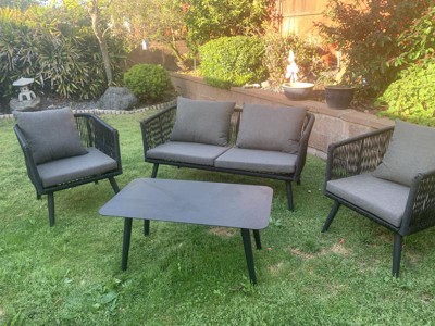 [This review was collected as part of a promotion.] I love this set! Simple, modern look and amazing quality materials! It took me less than an hour to put together, tool included. Seats are very comfortable and cushions well padded. Material on the cushions are top quality and have a zippers. This set is so stylish and I already got compliments on it from friends.