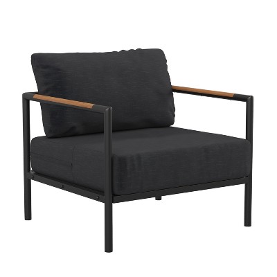 Merrick Lane Outdoor Patio Chair With Beige Removable Fabric Cushions And Black Steel Frame