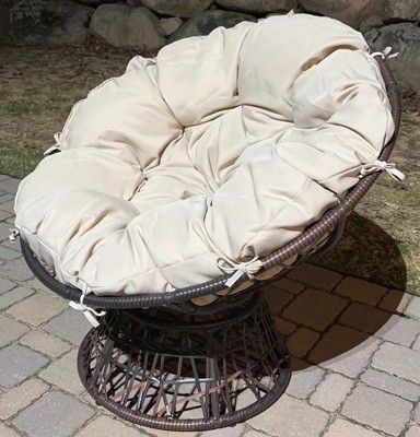 Merrick Lane Papasan Style Woven Wicker Swivel Patio Chair in Black with Removable All-Weather Black Cushion