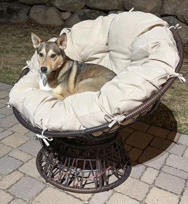 [This review was collected as part of a promotion.] Comfy reading chair!! The cushion is plush and large. Very sturdy….much better than previous round chairs I’ve owned. It’s a little difficult to put together so that’s the only reason I did 4 stars. Overall it’s a great corner chair or porch chair….not sure how it would hold up to the weather if not covered.
