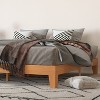 Ideal for open concept designs, this contemporary bed frame is subtle, strong, and dynamic. Minimalist in every way, with agile lines and a low profile platform frame that is supported by 14 wooden slats that accommodate any mattress without the need of a box spring. Modern wood finishes add an accent of style, reminding you that this bed frame was thoughtfully created for 21st century living. Additional Features: Center Leg for Added Stability, Easily Assembled with Accompanying Materials/Instructions, Item Size: 75.5"W x 79.5"D x 12.25"H
