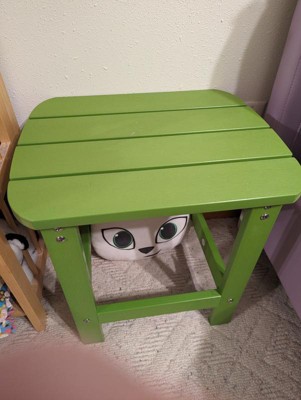 [This review was collected as part of a promotion.] This side table is so cute. I know it's meant for outdoors but we used it for a bedside table. Note-this is a junior bed so it sits lower. It is perfect for our kiddo. It is such a fun lime green color and is very durable. Great for putting a glass of water and what ever you need next to their bed. It was very easy to assemble in just a few minutes.