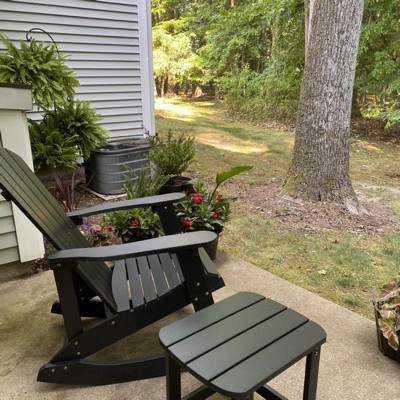 [This review was collected as part of a promotion.] Savannah All-Weather Poly Resin Wood Adirondack Rocking Chair with Rust Resistant Stainless Steel Hardware in Black is very comfortable and made of high quality materials. This looks lovely in our beautiful garden. We will pair it up with a table and this will make a beautiful relaxing area. Highly recommended.