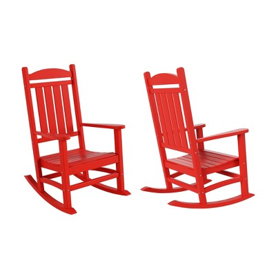 Merrick Lane Set of 2 Red Poly Resin Indoor/Outdoor Rocking Chairs