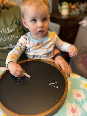 [This review was collected as part of a promotion.] I absolutely love my round wall chalkboards! It's the perfect addition to my kitchen and makes leaving notes for my family a breeze. The size is just right and the classic blackboard design adds a touch of charm to the space. The chalk writes smoothly and erases cleanly, making it easy to update messages or grocery lists. Overall, I highly recommend this round wall chalkboard for anyone looking for a convenient and stylish way to communicate in their home.