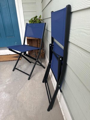 Merrick Lane Set of 2 Versatile Flex Comfort Indoor/Outdoor Fold Chairs with Black Metal Frames in Navy