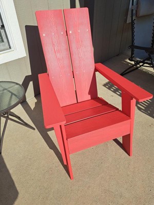 [This review was collected as part of a promotion.] This chair was easy to assemble and is well built. It is very modern, stylish, and the red adds a nice pop of color to my patio! The poly resin it is made out of seems to be very strong and durable. The poly will also be easy to care for, as you'll never need to re-finish or re-stain it as you would have to do with wood.