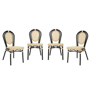 Merrick Lane Toulon Set of Four Stacking Thonet Bistro Style Chair, Natural PE Cane Rattan Seat, and Black Metal Frame for Indoor/Outdoor Use