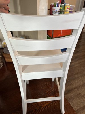 [This review was collected as part of a promotion.] These chairs came packaged well. No scrapes or nicks. They are solid! Super well made. Assembly was easy. The design is classic farmhouse style but so gorgeous. I love the rustic detail of the “ worn look’ . These will be going with my center island in my kitchen after we remodel in the spring. Absolutely gorgeous. Now the only con is that there aren’t any screw hole locations on the bottom of the seat to guide for attachment .