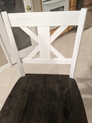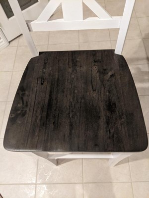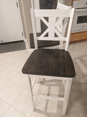[This review was collected as part of a promotion.] Beautifully crafted and easy to build are these bar stools. Perfectly described as The Farmhouse design. Colors worked perfect in our house with the white washed exterior and beautiful wooden seat that is comfortable as well as the high back chair. Perfect addition!