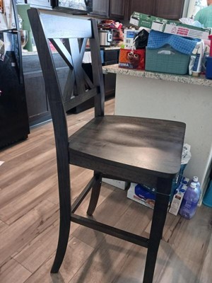 [This review was collected as part of a promotion.] I love this farm house chair! It's very strong and beautiful. It have beautiful dark greyish smooth and shiny finish. I love how it has alot of room to sit. It's height is perfect for my counter table and the kids can sit at it with me fearing they will fall. I love the wide back that gives it extra support for extra balance. It made the chair not ever tipping back. It's easy to assemble too! All you need is your screw driver and the rest comes with the package. I highly recommend this farmhouse barstool for all!