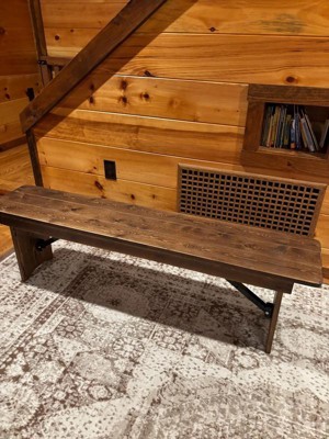 [This review was collected as part of a promotion.] I absolutely love this bench! It didn’t need any assembly it came put together, all we had to do was move the pins. The pins make it easy to collapse the legs and store for more storage space if needed. The stain on it is beautiful and matches my trim for my house. The bench holds me and my husband sitting down on it. I used it for my front entrance for people to sit on to put on their shoes. The only thing I don’t like is it could be more sturdy, it does wobble a bit when sitting on it. Other than that it’s great.