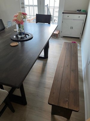[This review was collected as part of a promotion.] I received this bench from Influenster free for my opinion. This bench is fantastic. Solid wood, it’s very attractive and sturdy. So easy to put together just take the pins out, extend the legs and put the pins back in. It’s a gorgeous walnut color. You can use this inside or out. This works perfectly for my dining table, providing seating for two more people of three little people. The quality and design is outstanding. I would highly recommend this bench to those who want some extra seating or a bench in the entry way. You could even put it at the end of your bed.