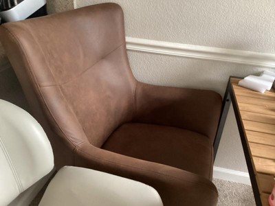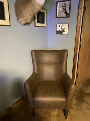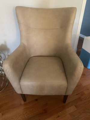 [This review was collected as part of a promotion.] Absolutely love this wing back chair. Super easy assembly, just add the feet. The faux leather feels and looks exactly like the real thing. It’s so buttery soft and looks high quality. You can tell just sitting In it that it’s made to last. We love it so much we’re planning on getting another for our den.
