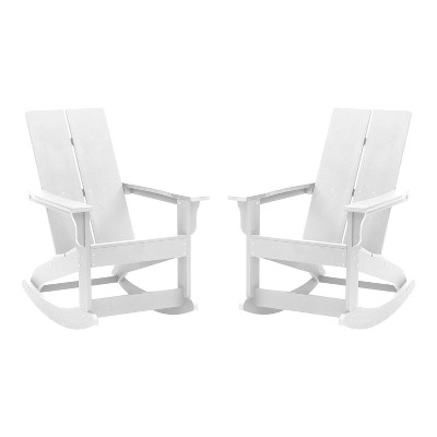 Merrick Lane UV Treated All-Weather Polyresin Adirondack Rocking Chair in White for Patio, Sunroom, Deck and More