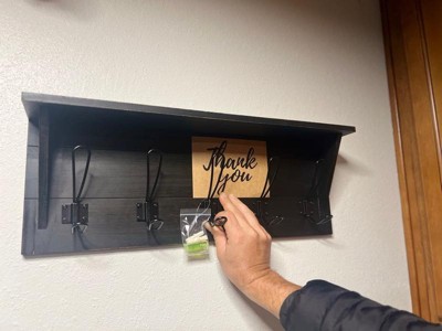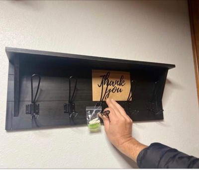 [This review was collected as part of a promotion.] I love this shelf! I have it in my kitchen near the door we use to leave the house. We can hang our keys, light purses, dog leashes and other items that aren't too heavy. I love that I can put cute decorations on the shelf as well. It is very functional as well as adding to the decor.