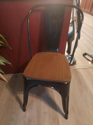 [This review was collected as part of a promotion.] This Belnick metal chair is so nice. It's very sturdy with a great black color painted. The wood seat top adds a nice dark brown pop to it. It's a perfect size.