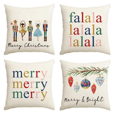 Merry Christmas Joy Xmas Trees Red Throw Pillow Covers, 18 x 18 Inch Christmas Winter Holiday Cushion Case Decoration for Sofa Couch Set of 4