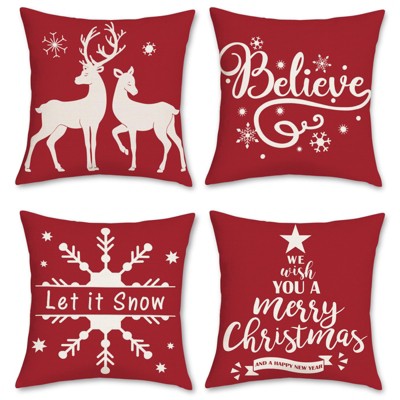 Merry Christmas Trees Snowflake Star Throw Pillow Covers, 18 x 18 Inch Xmas Balls Red Polka Dot Plaid Seasonal Hello Winter Holiday Cushion Case Decoration for Sofa Couch Set of 4